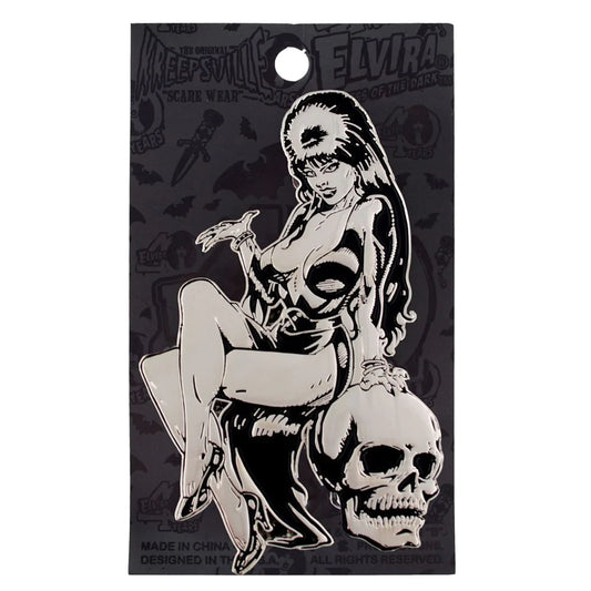 Elvira Silver Comic Skull Enamel Pin